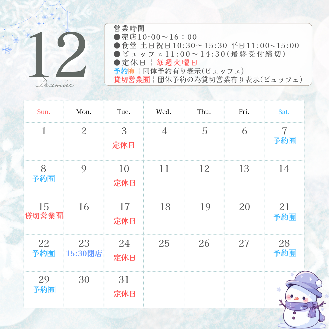 12月営業日カレンダー