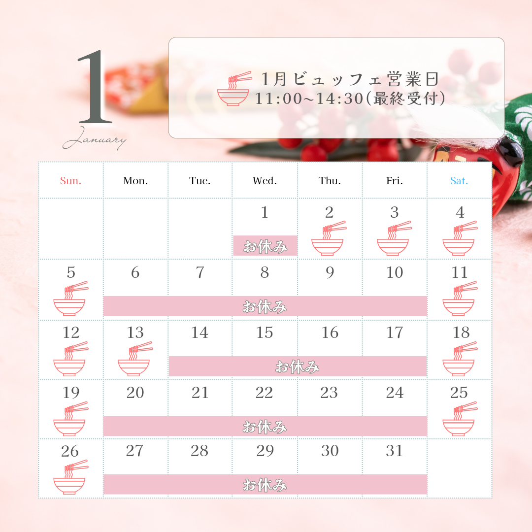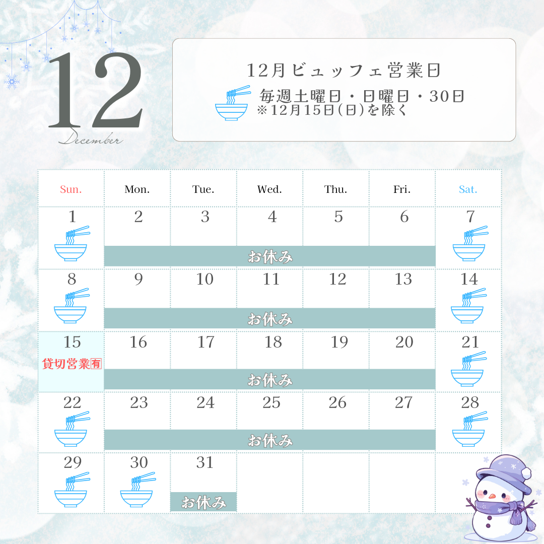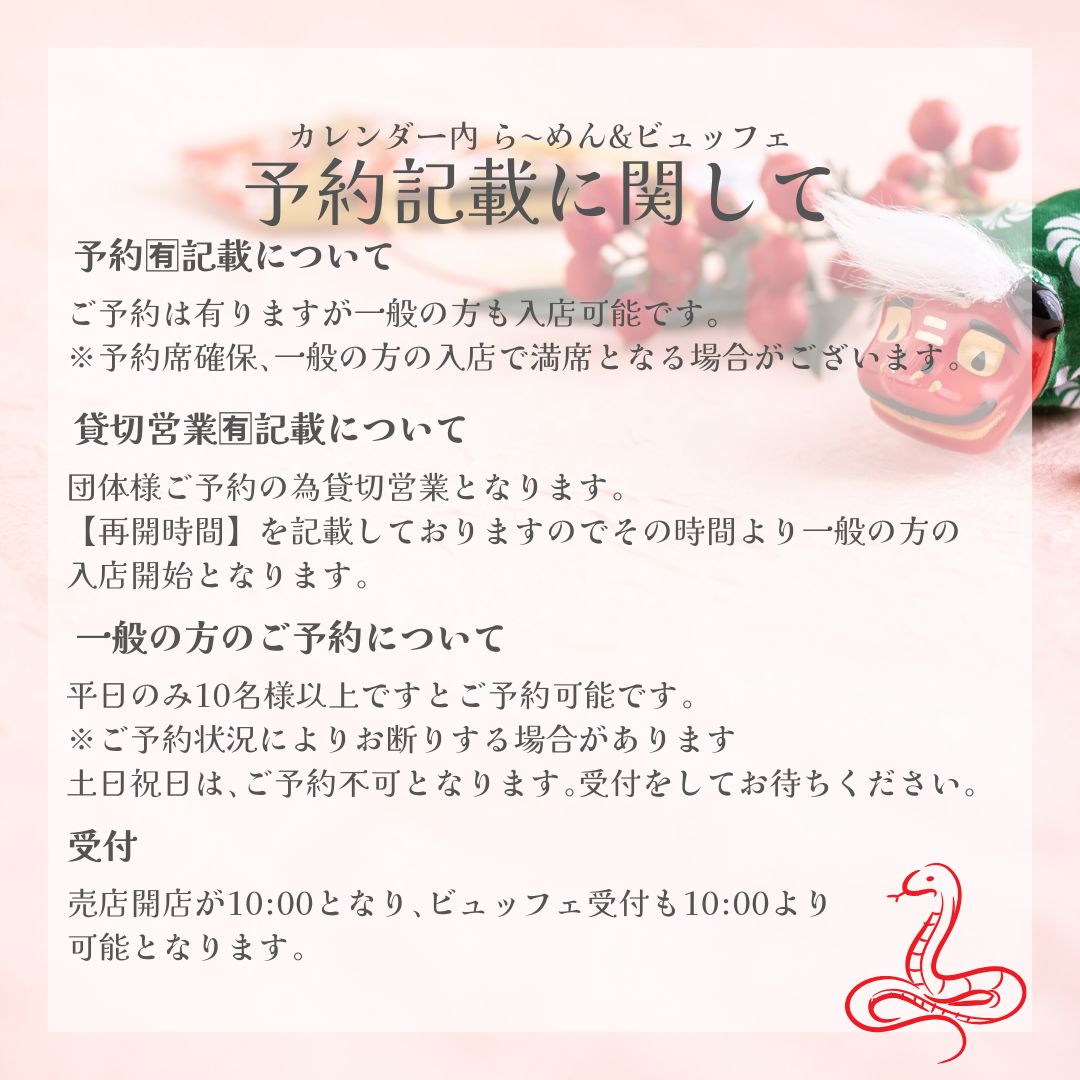2025年1月からは、【らーめん&ビュッフェ】冬季は、【冬季限定団体様お膳メニュー】をご利用くださいませ。