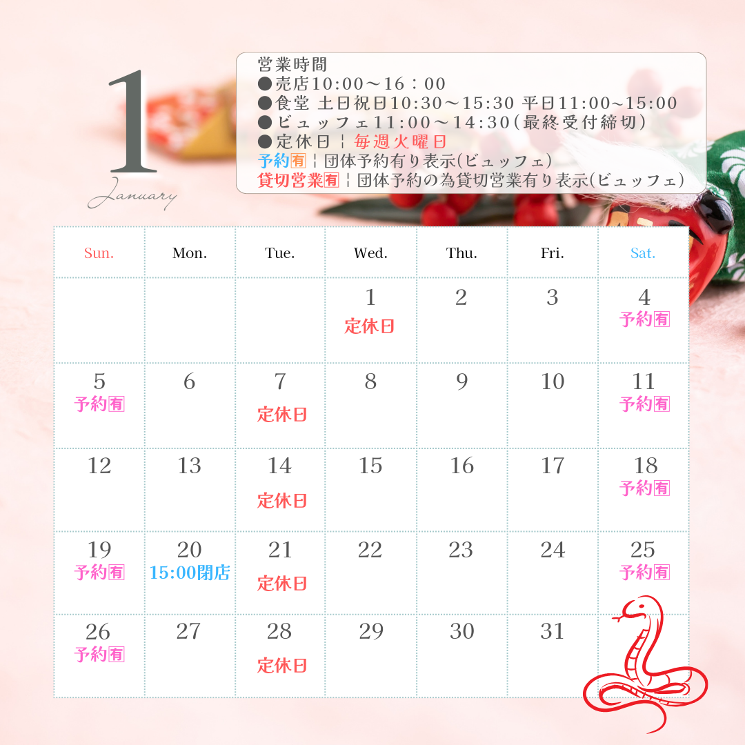 1月営業日カレンダー