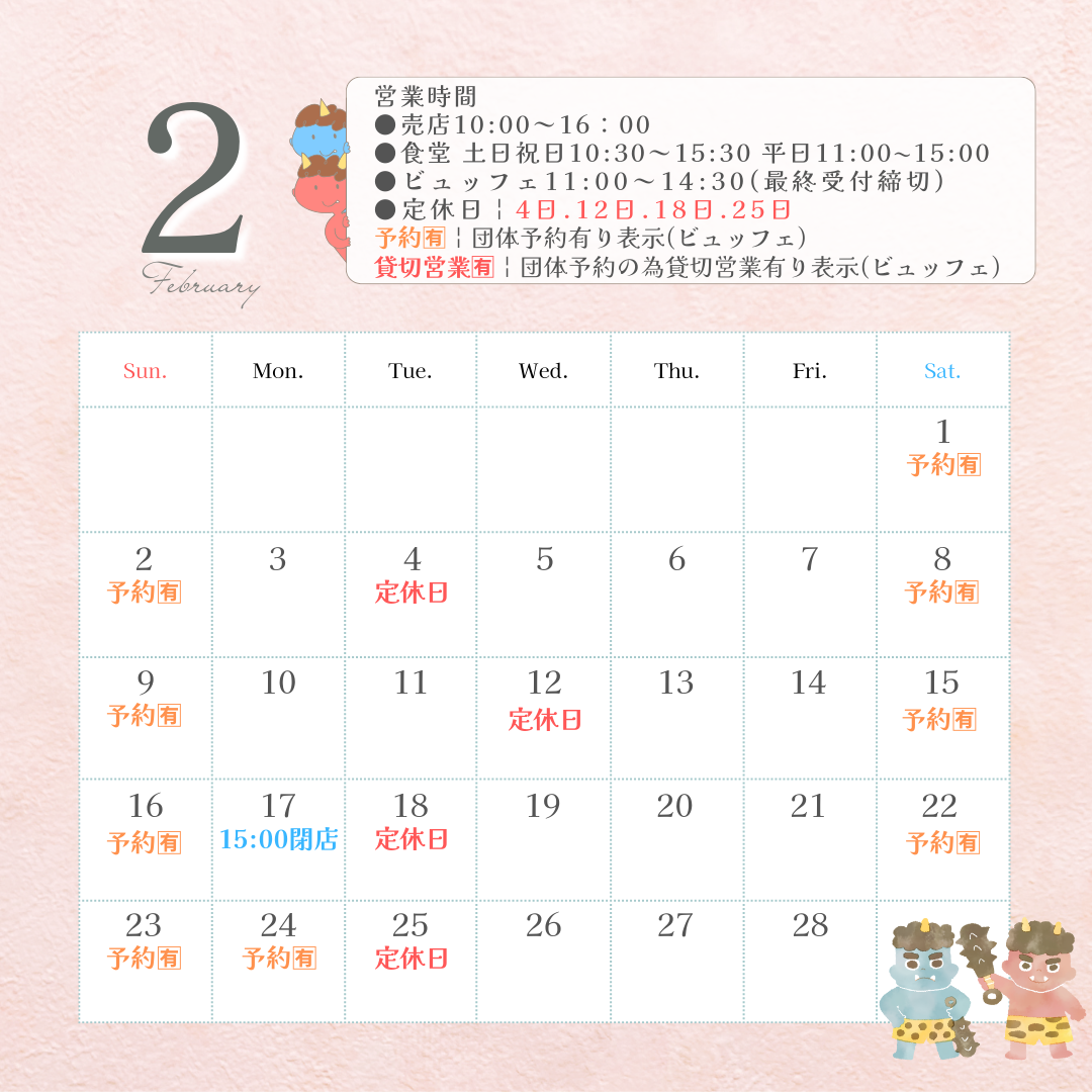 2月営業日カレンダー