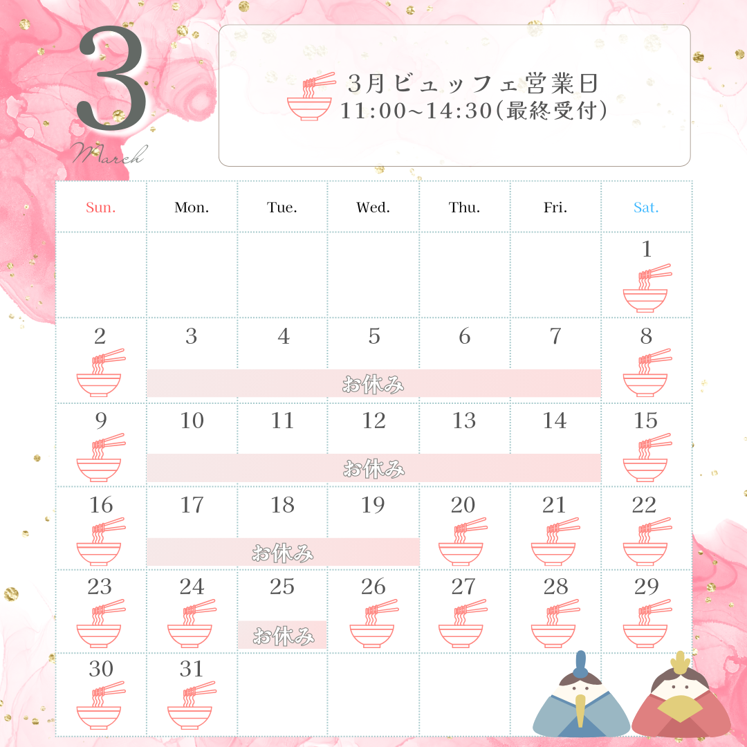 3月営業日カレンダー