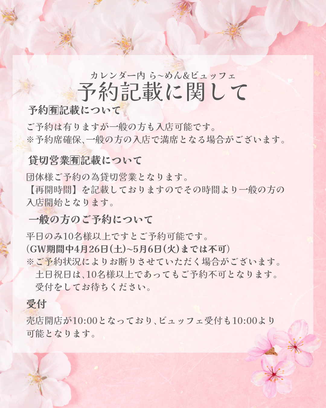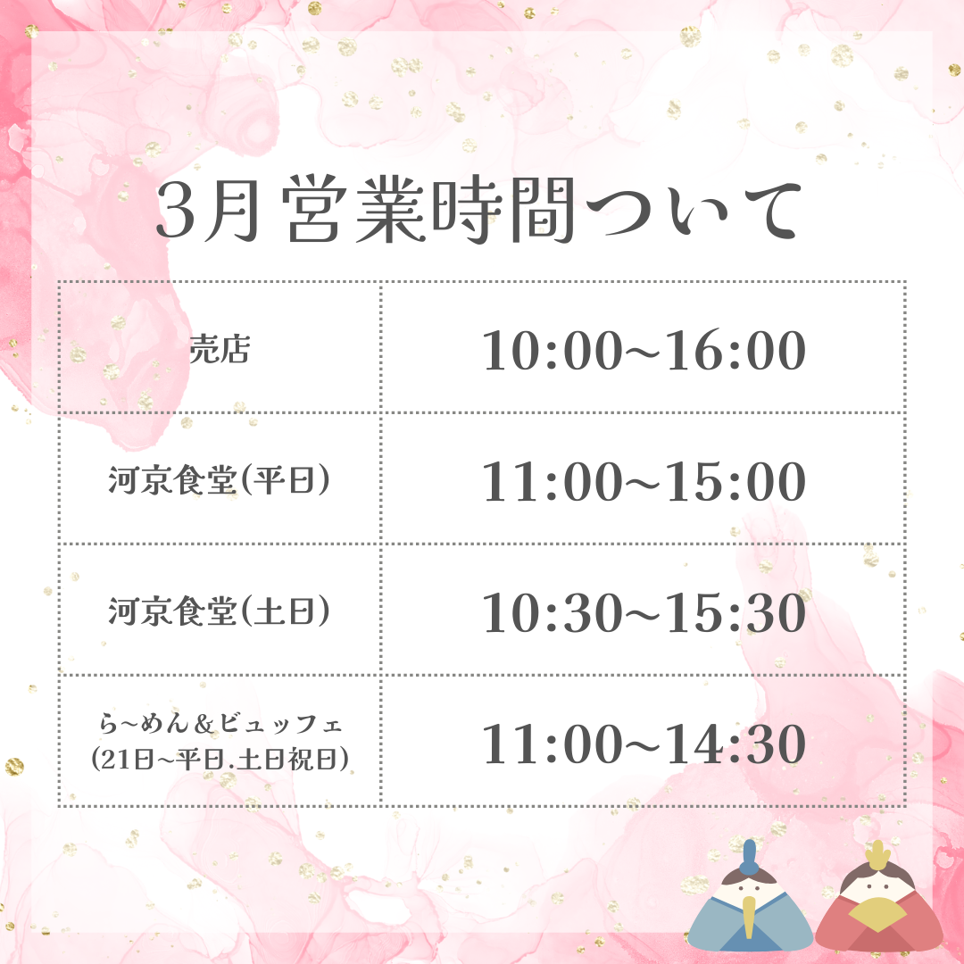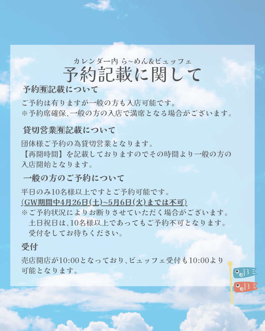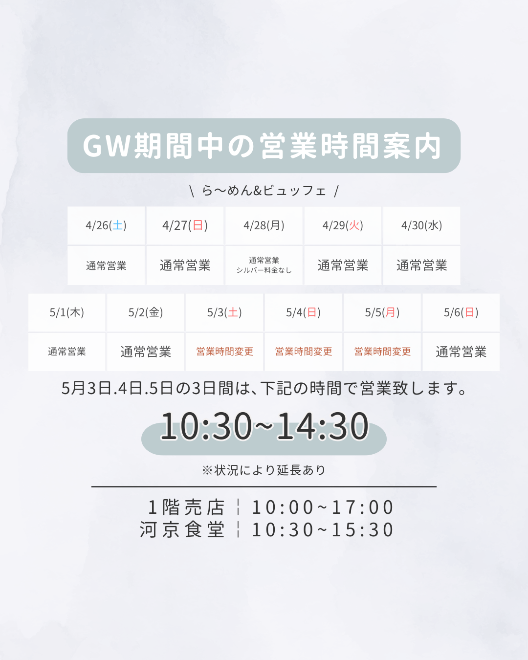 GW期間中の営業時間のお知らせとなります。