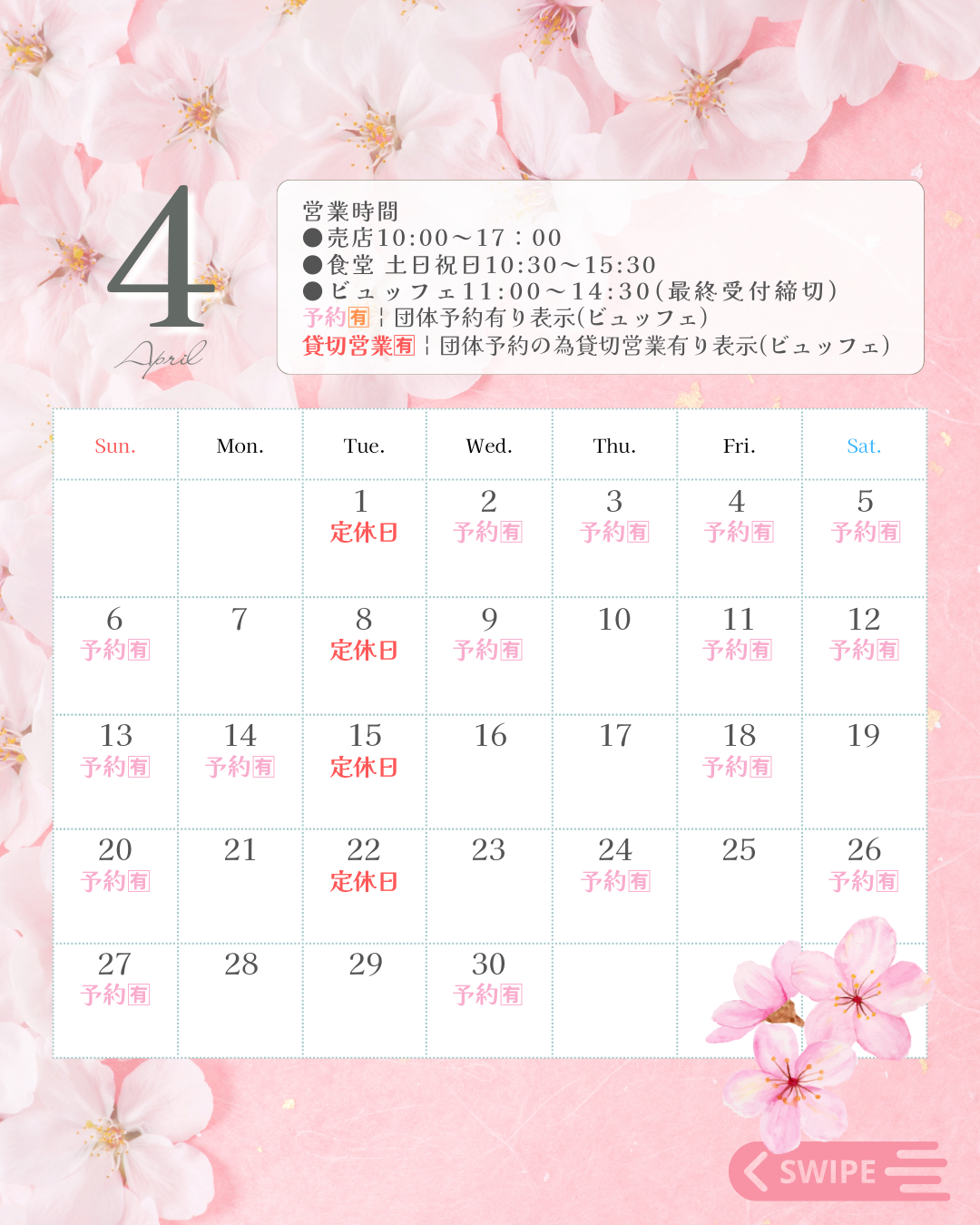 4月営業日カレンダー
